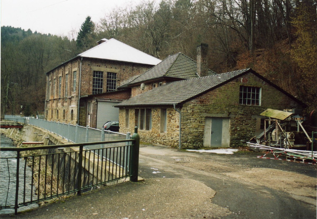 Die Fotos zeigen einen Teil der alten Anlage und dann die heutige moderne Wasserkraftanlage mit der Turbine für die Stromerzeugung.